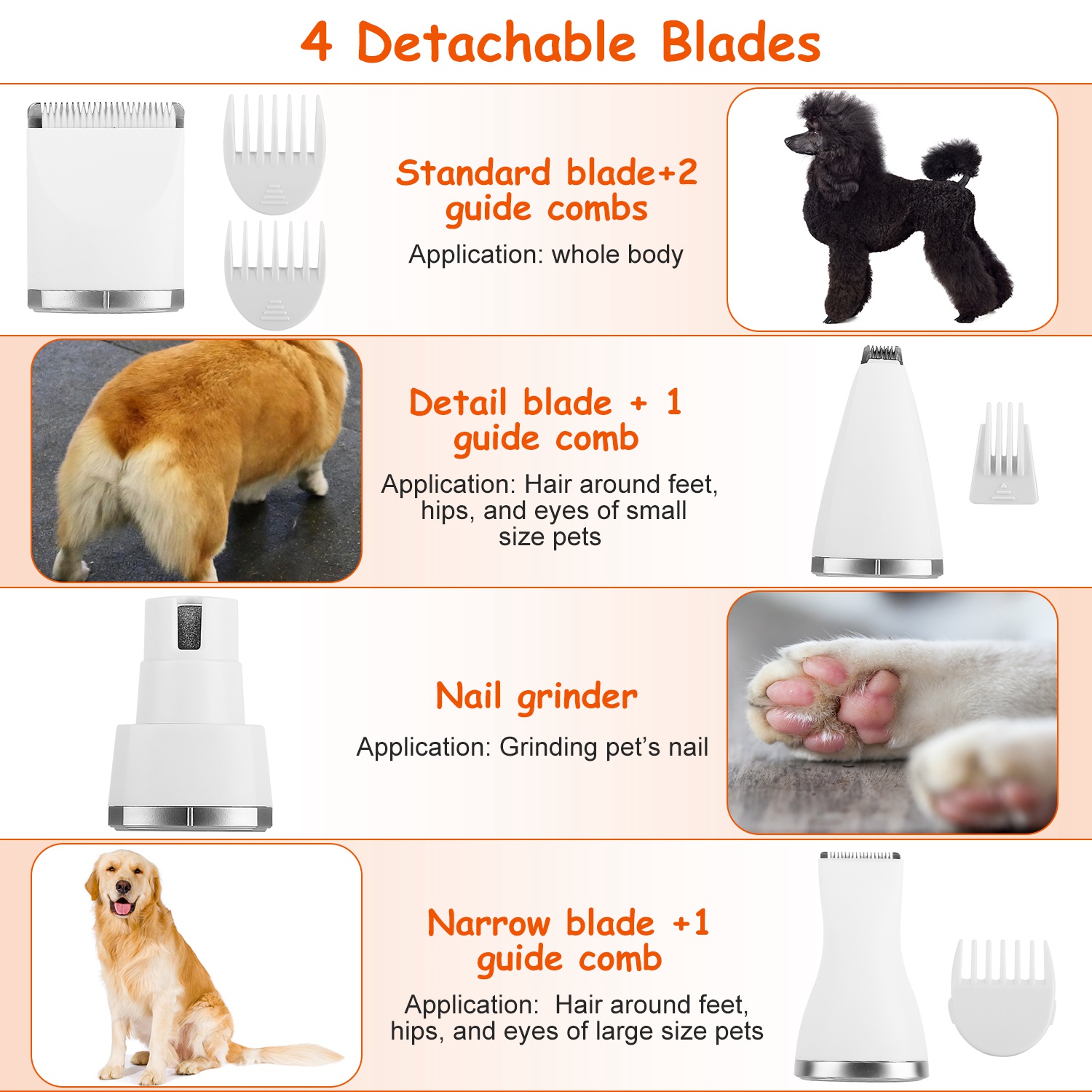 4 In 1 Electric Pet Dog Grooming Kit Cordless Rechargeable Pet Hair Trimmer Shaver Set Low Noise Nail Grinder with 4 Guide Combs 4 In 1 Electric Pet Dog Grooming Kit Cordless Rechargeable Pet Hair Trimmer Shaver Set Low Noise Nail Grinder with 4 Guide Combs 4 In 1 Electric Pet Dog Grooming Kit Cordless Rechargeable Pet Hair Trimmer Shaver Set Low Noise Nail Grinder with 4 Guide Combs 4 In 1 Electric Pet Dog Grooming Kit Cordless Rechargeable Pet Hair Trimmer Shaver Set Low Noise Nail Grinder with 4 Guide Combs 4 In 1 Electric Pet Dog Grooming Kit Cordless Rechargeable Pet Hair Trimmer Shaver Set Low Noise Nail Grinder with 4 Guide Combs