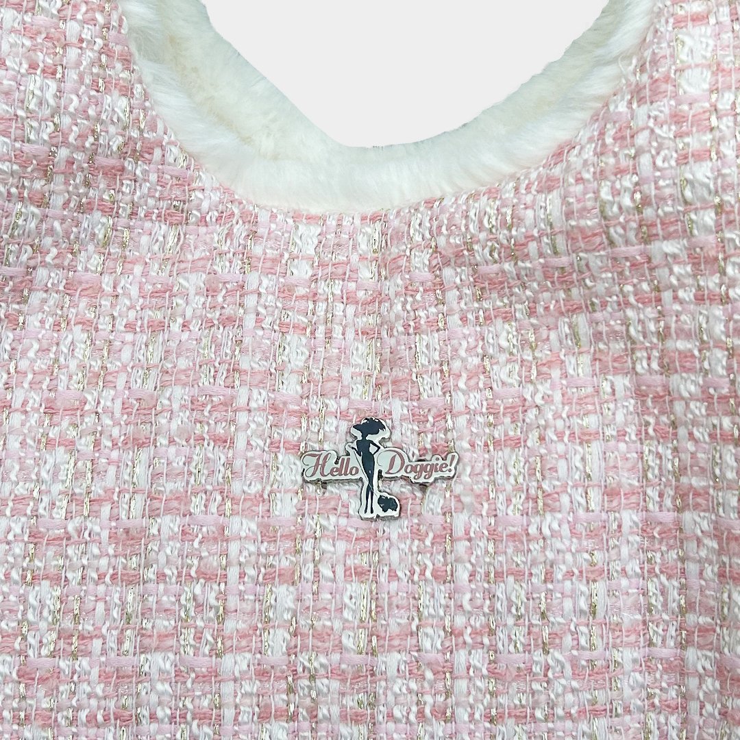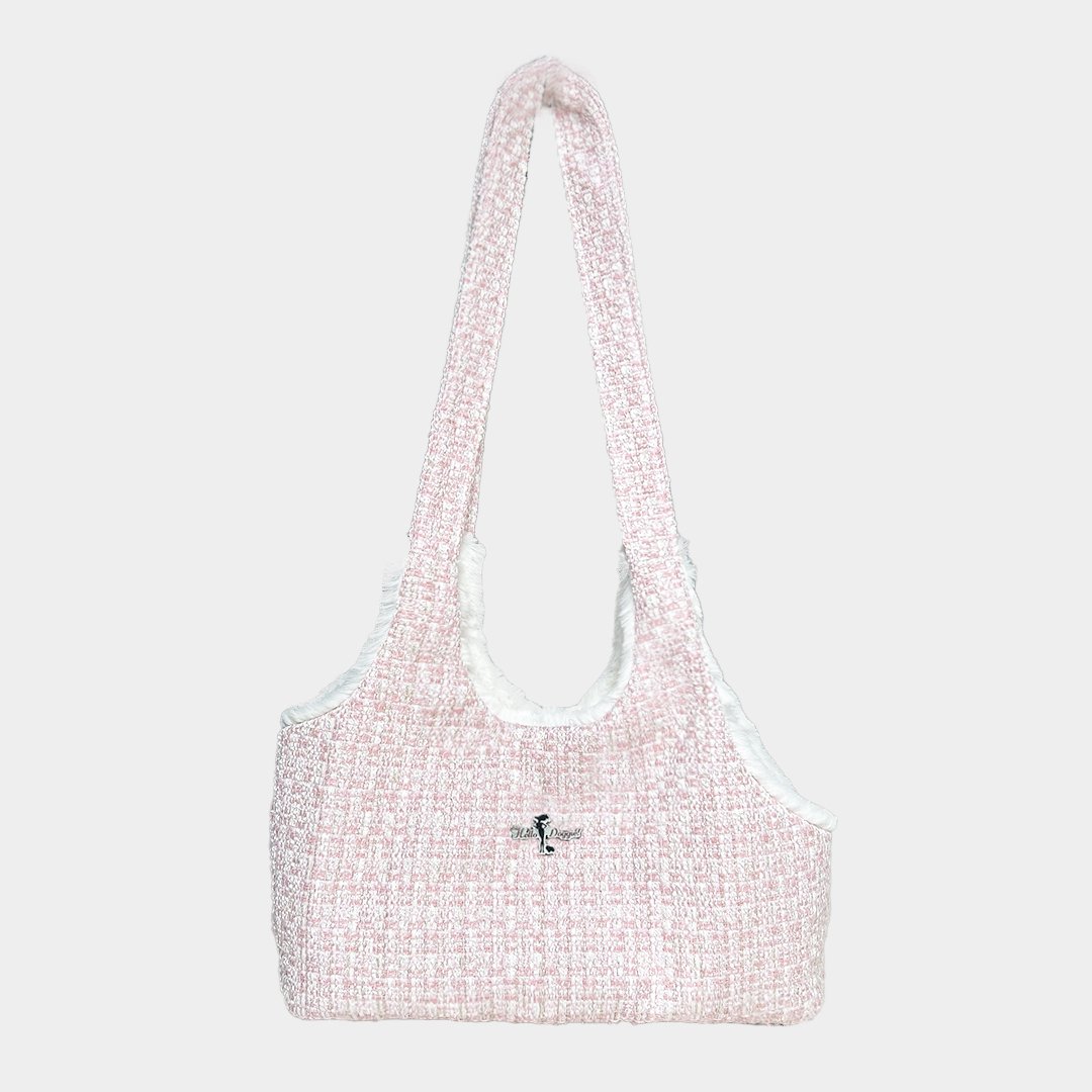 "Introducing the luxurious Annabella Dog carrier by Hello Doggie, a blend of style and functionality like no other! Crafted from our exquisite pearl tweed fabric and lined with soft faux fur, this carrier ensures your beloved pet travels in ultimate comfort and sophistication. The beautiful design includes a headrest, giving your furry companion a view of the world while securely harnessed in with our safety tether. The satin pocket with YKK zipper provides a chic touch for storing essentials, while the magnetic snap closure adds an extra layer of security. For easy care, simply spot clean or wash cool on delicate cycle without bleach or softener, and air dry or tumble on low. Take your pet's travel experience to the next level with the Annabella Dog Carrier and  matching Annabella Dog Harness, where luxury meets practicality. LIMITED EDITION  One Size   15"" L x 6"" W x 10"" H | For dogs up to 7lbs MSRP $196.00 *Carrier is handmade, size may vary slightly. Made in USA.* "
