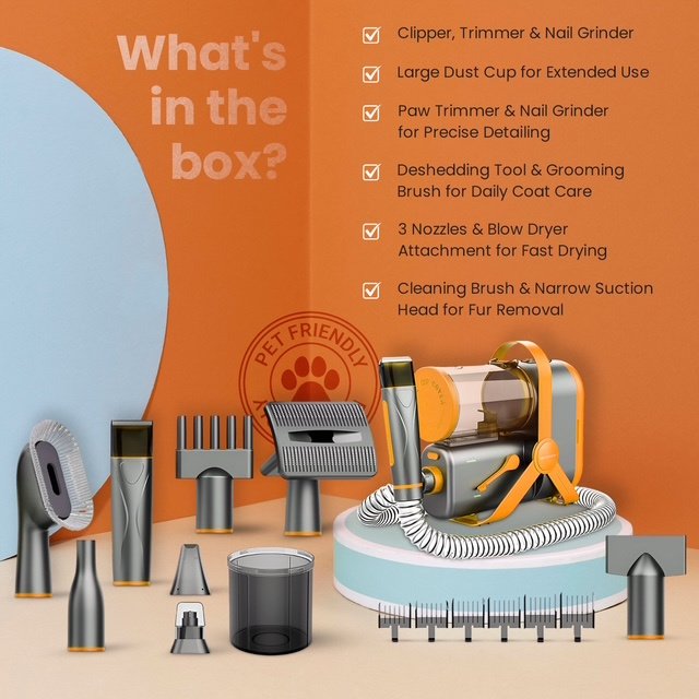 Dog Grooming Vacuum Kit with Dryer & Nail Grinder – Low Noise Pet Hair Grooming System