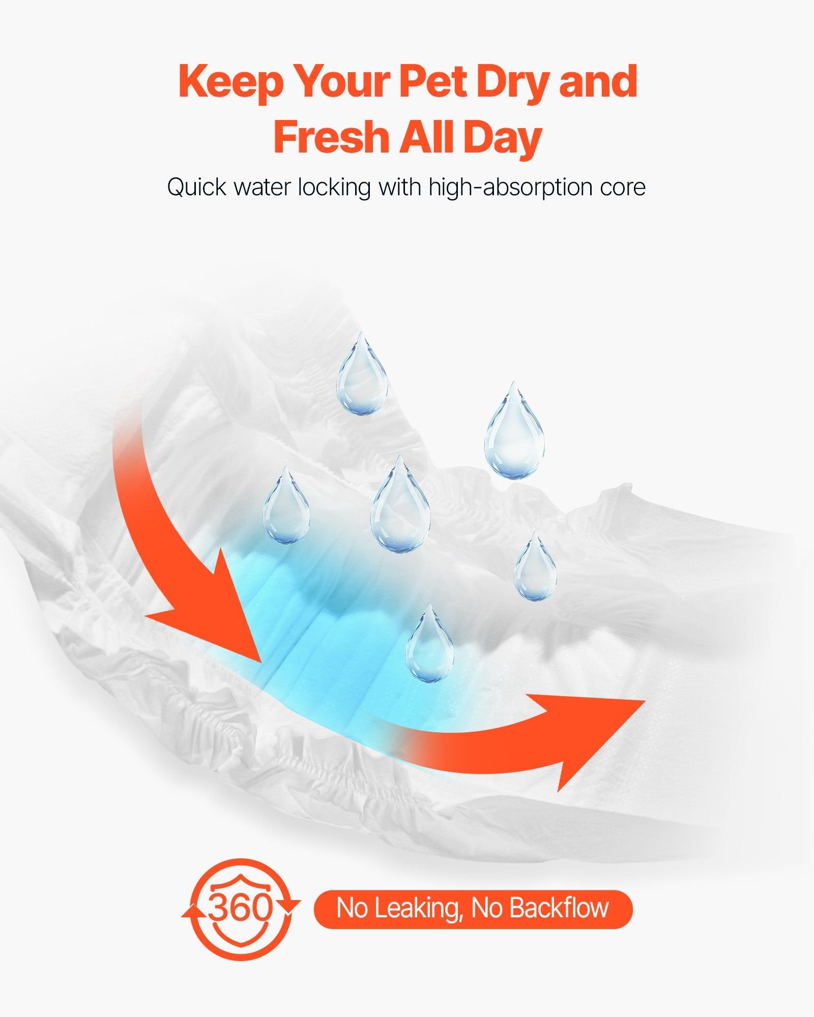1.Super Absorbent: VEVOR XS-sized disposable male dog diapers feature a super absorbent core that quickly locks in liquid, offering 360° leak-proof protection with no backflow. Perfect for dogs in heat cycles, pet training, incontinence, post-surgery recovery, and travel. Suitable Waist Size: 6-13 inches / 15.24 - 33.02 cm